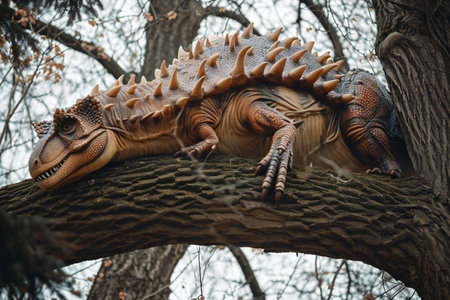 Ankylosaurus is a herbivorous genus of armored dinosaurs, a dinosaur from the very end of the Cretaceous period. Close-up with copy space. High quality photo