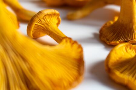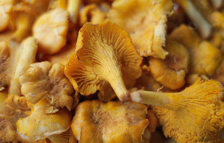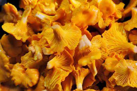 Close-up texture of mushrooms of the chanterelle family. Beautiful bright background for your projects