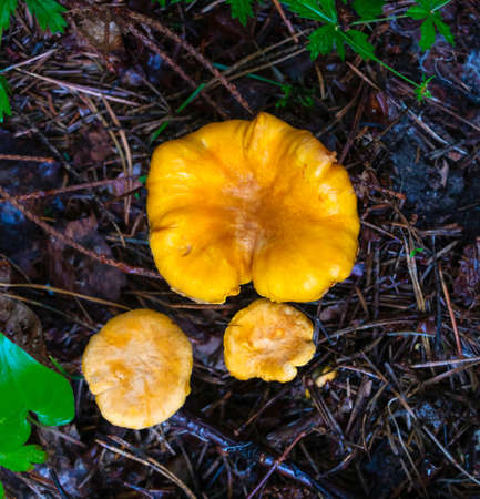 Chanterelle mushrooms,yellow mushroom. Easily recognizable edible mushroom