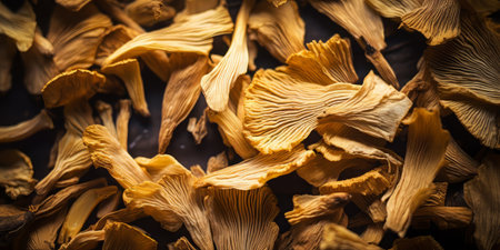 dried chanterelles on a texture background, copy space