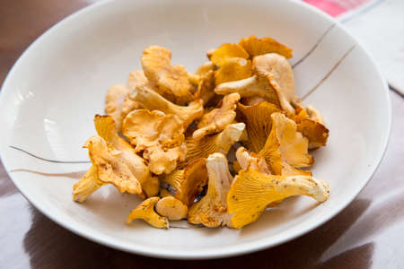Chanterelle mushrooms on the table