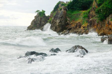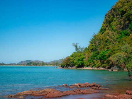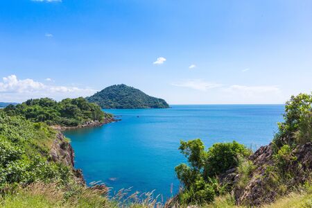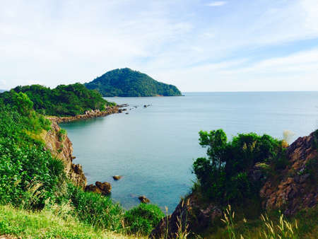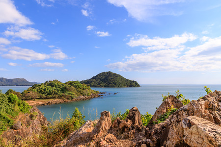 Rock cliff and seascape from Noen Nangphaya View Point in Chanthaburi, east of Thailand