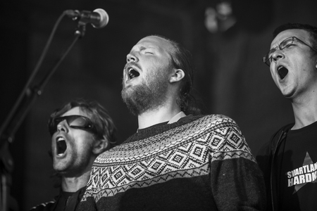 Traena, Norway - July 11 2014: during the concert of the Norwegian band Ida Maria at the Traenafestival, music festival taking place on the small island of Traena