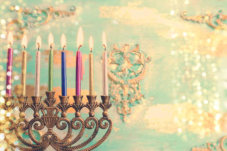 Image of jewish holiday Hanukkah with menorah (traditional candelabra) and candles