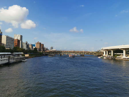River, Bridge, and Blue Sky in Tokyo, Japan. Taken by Borderless Traverler, on 2019/07/27.
