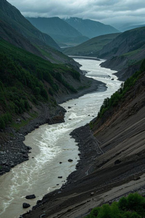 Magnificent picture of a river in a canyon, the beauty of the meanders between mountains and rivers