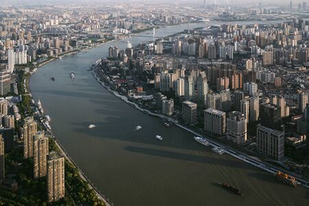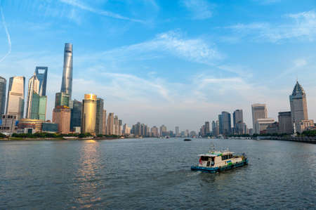 SHANGHAI, CHINA - MAY 20, 2019: Cityscape of Shanghai and Huangpu river in Shanghai, China.