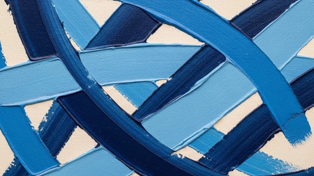 A vibrant abstract design showcases intersecting blue lines and textures against a bright white backdrop, creating visual depth and energy.