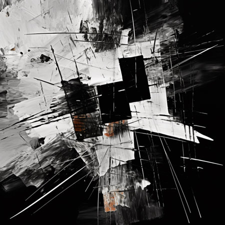 Black and white abstract painting creating dynamic composition
