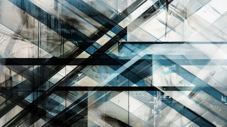 This image is a close-up abstract view of overlapping lines in blue and gray, creating a geometric pattern. The lines appear to be both straight and angled, suggesting a sense of depth and dimension. The light and dark tones of the colors create a sense of contrast and movement.