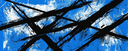 A striking cobalt background with bold, jagged lines of black and white, creating a high-contrast, edgy look with an urban feel.