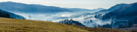 beautiful mountain landscape with fog in the morning. long exposure shot