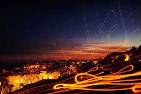 Abstract long exposure, experimental surreal photo, city and vehicle lights at night
