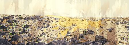 Digital painting of golden city, illustration of historic building for background. Jaisalmer City in Rajasthan, India.