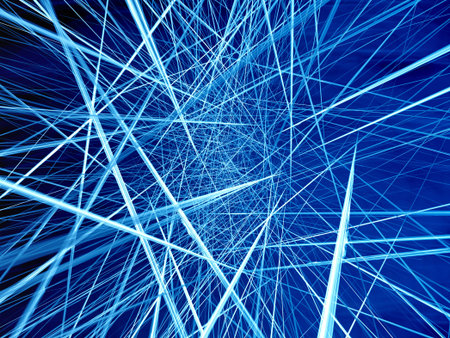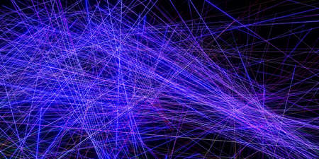 Crossing light beams. Energy flow Laser lines. Neon plexus knots. Curved guide path in space of infinity. Transition matrix energy level. Point deep datasets big deep data. Chaos and order background
