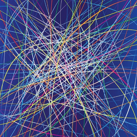 Abstract vivid lines and shapes design on dark background. Multicolored art background texture for imagination, creativity and design. For print, design, web, banners, media, illustrations.