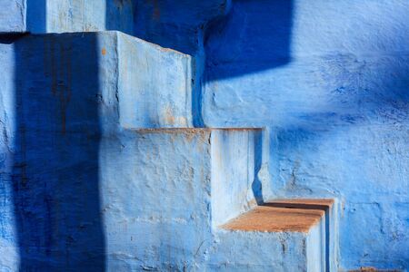 Stairs of blue painted house in Jodhpur, Blue City around Mehrangarh Fort. Jodphur, Rajasthan