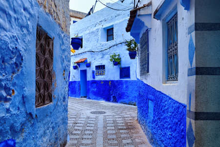 Chefchaouen blue city of Morocco. Beautiful street of blue medina in Africa