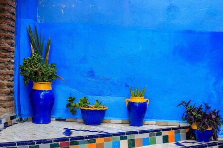 View of the blue walls of Medina quarter in Chefchaouen, Morocco. The city, also known as Chaouen is noted for its buildings in shades of blue and that makes Chefchaouen very attractive to visitors.
