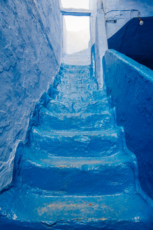 street in old Medina of the city of Shefshauen, Morokko. Bright saturated blue color