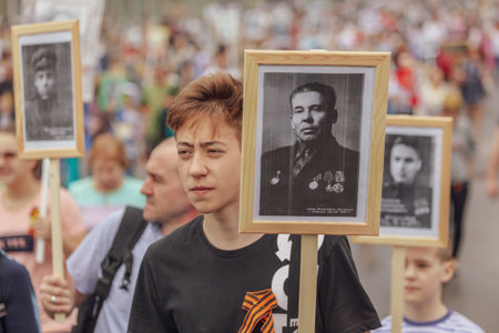 Lipetsk, Russia - May 9, 2018: IMMORTAL FOLK action in honor of the Victory in the 1945 war .