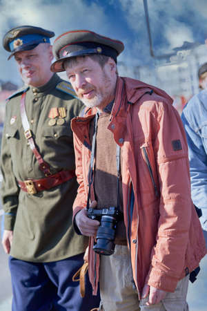 Saint Petersburg, Russia - May 09, 2021: War photographer at the Victory Day celebration in St. Petersburg