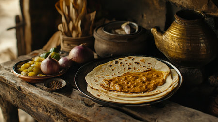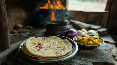 Traditional indian roti or roti made using roti or roti, served with onion and spices