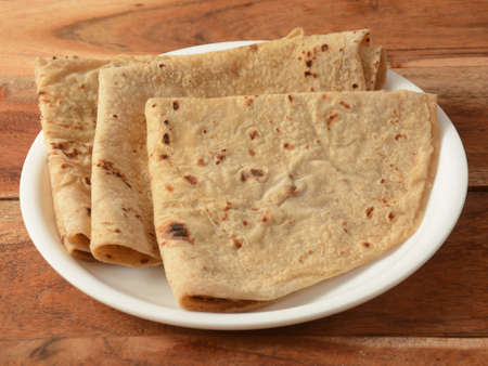 indian bread or roti made from whole wheat flour or refind flour without added yeast