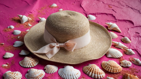 A delicate summer hat resting on a folded beach towel, clear blue sky in the background, high-definition, soft lighting --chaos 30 --ar 16:9 --v 6.1 Job ID: 2b0a1e14-28fa-4858-ab16-e9b2de06d5b9