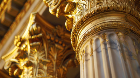 Explore the beauty of decorative golden Corinthian columns showcasing intricate details and historical significance, perfect for architectural themes.