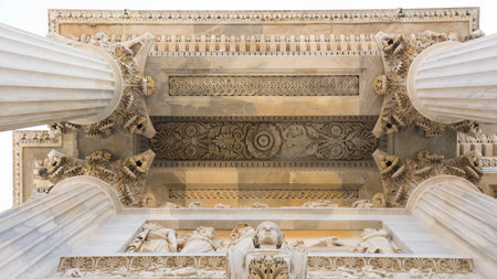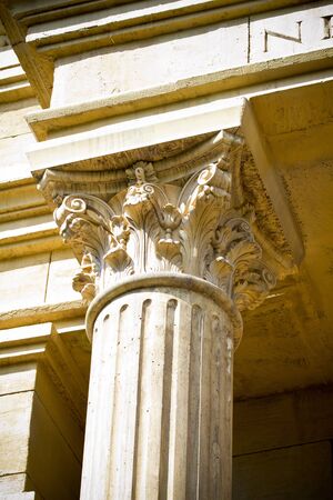 Abstract angle of Roman architecture with marmor stone pillars in late evening