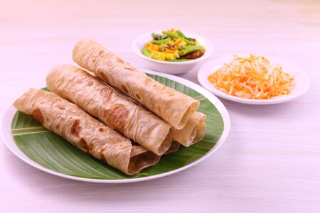 Chapati roti, chapathi, Paratha Indian whole wheat flat bread. Healthy fiber rich traditional North or South food Kerala India. Indian traditional food chapati or roti drying on surface in sunlight.