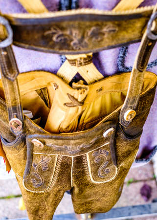 Genuine Leather Belts Hanging on a Rack in Retail Store. Leather Products Line.