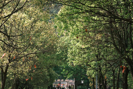 Public park in the big city. Place and outdoors concept. Nature and landscape theme. Bangkok Thailand location.