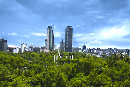 View of Chapultepec Park and Reforma Avenue from the Mexico City
