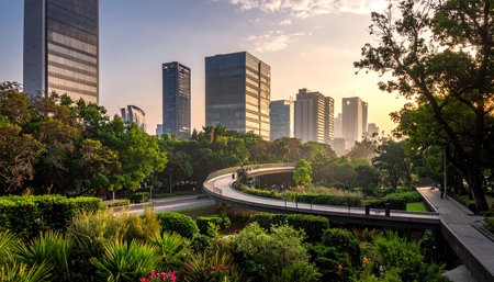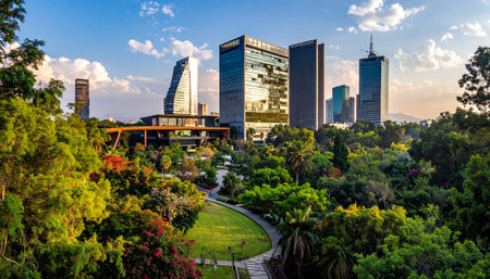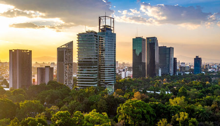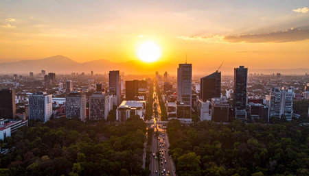 The skyline of Mexico City amidst a bustling day. AI generated