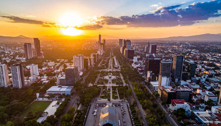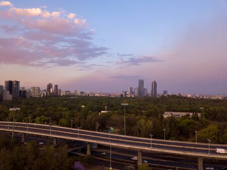 Mexico city aerial view of Chapultepec park sunset scene