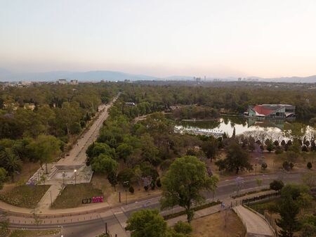 Mexico City aerial view of Chapultepec Park sunset scene