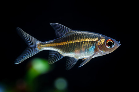 Blue Ternary genetically modified fish in the aquarium. Gymnocorymbus ternetzi. Soft focus.