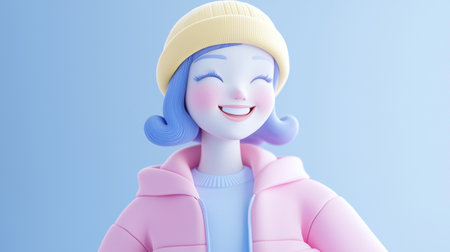 Woman Smiling Minimalistic 3D soft illustration.