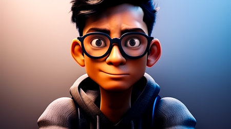 cartoon man with glasses. Generative AI.