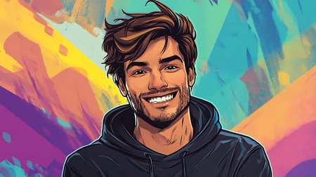Portrait of a man in a black hoodie. Vector illustration.