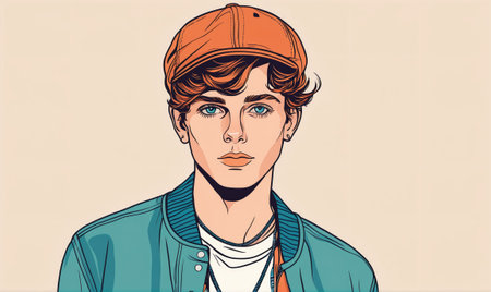 a young boy's face is captured in a photographically detailed portrait, showcasing the crisp neo-pop style with vibrant orange and cyan colors. the image reflects elements of fawncore, classic portraiture, and the superflat style, reminiscent of george lucas' artistic influence. ai generated