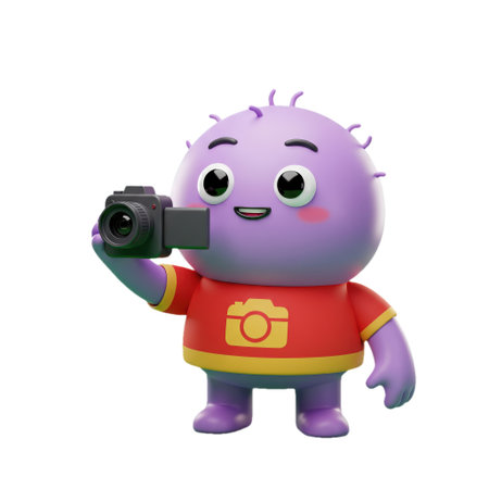 A stylized purple character holding a camera in celebration of the Spring Festival.