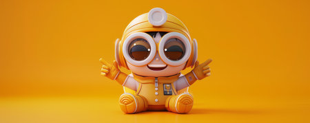 Adorable Cartoon Character in Yellow Spacesuit with Big Eyes on Vibrant Orange Background Cute Animated Astronaut Illustration for Kids and Sci Fi Fans AI Generative