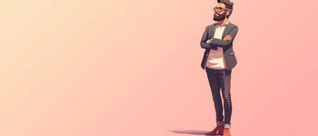 Hipster man with beard and mustache. 3D Rendering