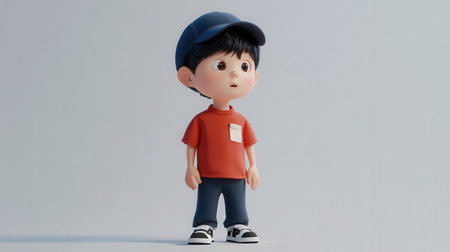 3d rendering of a little boy wearing a cap and t-shirt