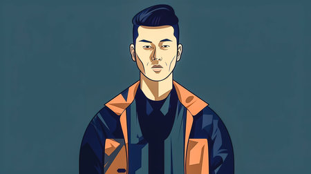 Creative illustration with a young stylish man of oriental appearance.