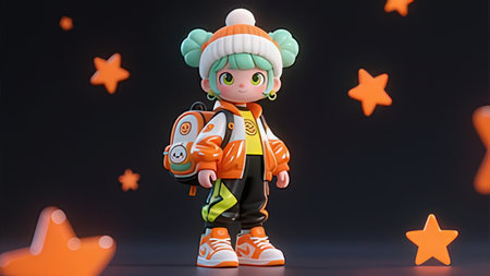 Cheerful Cartoon Boy Figurine in Bright Orange Background Displaying Playfulness and Joy in Artwork Design, Featuring Cute Childlike Character with Big Smile and Simple Outfit in Fun Illustration Style AI Generative