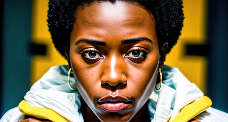 AI Generated. African american young man with expressive face and intense gaze